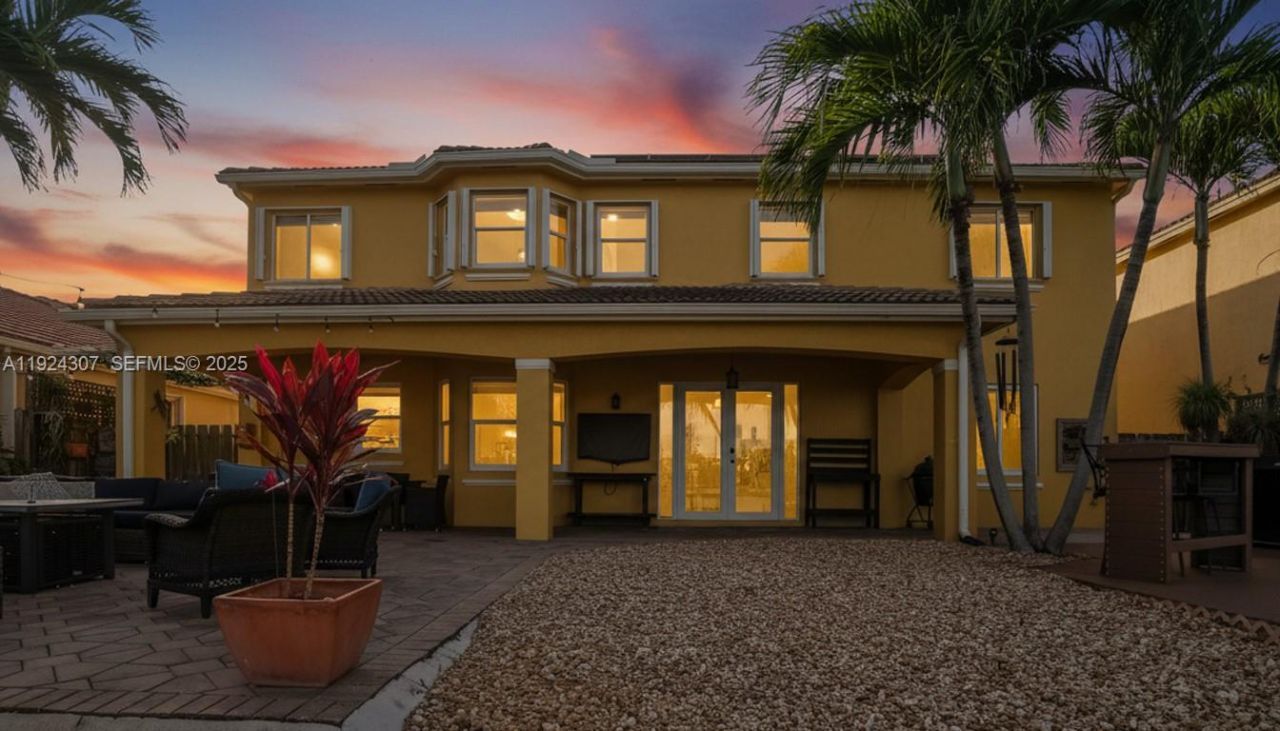 Discover this beautifully maintained 4-bedroom, 3-bath home perfectly situated on a tranquil lakefront lot. This home features a convenient first-floor bedroom and full bath, as well as three bedrooms and two baths upstairs. The home also features solar panels that significantly enhance energy efficiency, along with impact windows on the first floor and accordion shutters on the second. Inside, the main living areas are finished with tile flooring, while the upstairs bedrooms offer carpeting for...Discover this beautifully maintained 4-bedroom, 3-bath home perfectly situated on a tranquil lakefront lot. This home features a convenient first-floor bedroom and full bath, as well as three bedrooms and two baths upstairs. The home also features solar panels that significantly enhance energy efficiency, along with impact windows on the first floor and accordion shutters on the second. Inside, the main living areas are finished with tile flooring, while the upstairs bedrooms offer carpeting for added comfort. The kitchen is equipped with stainless steel appliances and ample cabinetry, a large island, and a walk-in pantry. The primary suite is complemented by beautiful lake views and two closets for extra space. Step outside to the backyard overlooking a lake, an inviting setting for outdoor dining, gatherings, or simply enjoying the peaceful scenery. The spacious 3-car garage offers ample storage and convenience, accommodating multiple vehicles or hobby space