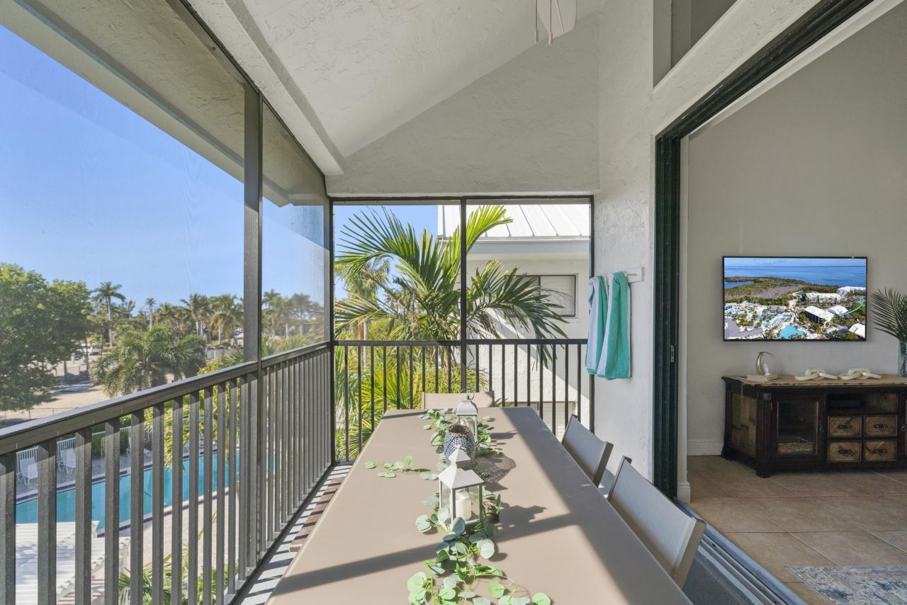 Tucked within the gated setting of South Seas Resort, 3233 Tennis Villas presents an inviting island escape in the intimate Captiva Resort Villas community. Residents enjoy access to a private pool, expansive sun deck, gazebo with outdoor dining space, and grilling area, all just moments from the Gulf shoreline.Positioned in the desirable southern enclave and only a short stroll to the beach, this top-floor, two-level villa overlooks a tranquil courtyard framed by mature tropical landscaping. Th...Tucked within the gated setting of South Seas Resort, 3233 Tennis Villas presents an inviting island escape in the intimate Captiva Resort Villas community. Residents enjoy access to a private pool, expansive sun deck, gazebo with outdoor dining space, and grilling area, all just moments from the Gulf shoreline.Positioned in the desirable southern enclave and only a short stroll to the beach, this top-floor, two-level villa overlooks a tranquil courtyard framed by mature tropical landscaping. The interior has been thoughtfully updated with quartzite surfaces, crisp shaker-style cabinetry, and tile flooring throughout the main living areas. The open living and dining space is filled with natural light from impact-rated sliding glass doors and an oversized picture window, while the screened lanai offers a peaceful setting to capture coastal breezes.The floor plan is designed for comfort and privacy, featuring a guest suite on the main level and a generous primary suite upstairs. Ideal for personal enjoyment or investment, this well-appointed residence blends refined finishes with effortless island living within one of Captiva's most sought-after resort communities.